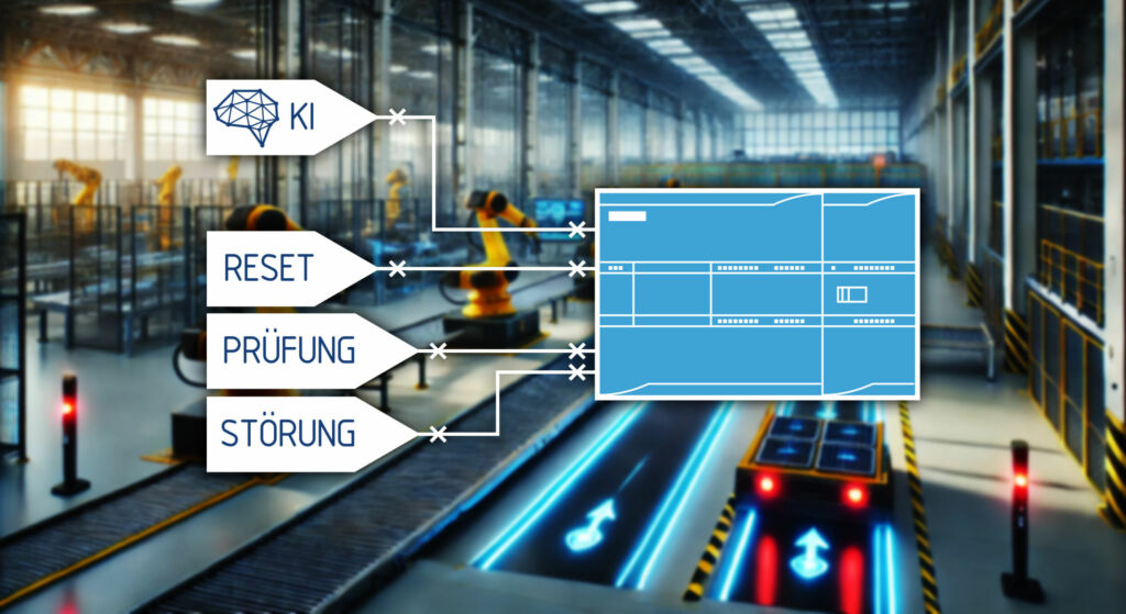 Um die Vorgehensweise zu beschreiben, gehen wir von folgender Aufgabenstellung aus: In das Eingangsdatenbild einer Anlagensteuerung (SPS) soll ein Störungssignal integriert werden, um z.B. Anomalien in den verschiedenen Antriebselementen der jeweiligen Anlage zu erkennen (z.B. eine Unwucht) und zusätzlich fortlaufend Anlagenzustandsdaten (Condition-Monitoring-Daten) an eine Digitalisierungsanwendung schicken. Die SPS kann durch diese Funktionserweiterung die gesamte Anlage gegebenenfalls anhalten, um weitere Schäden zu vermeiden. Für die Anomalieerkennung soll ein KI-Modell bzw. künstliches neuronales Netzwerk zum Einsatz kommen, dass mit vor Ort erfassten Anlagendaten per Machine Learning trainiert wird. Die KI-Funktionen müssen sich als kompakte externe Baugruppe ohne weitere Eingriffe und Veränderungen direkt an einem Maschinengehäuse befestigen lassen. Eingangsseitig kann die Baugruppe die Eigenvibration der Anlage sowie einen Drehzahl-Modulationswert (0 bis 10V) nutzen. Der KI-Baugruppenausgang wird mit einem binären SPS-Eingang verbunden, um erkannte Anomalien anzuzeigen.